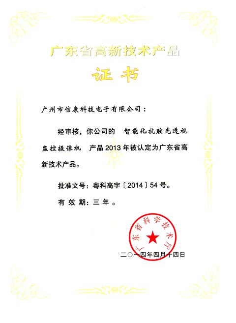 取得广东省高新产品证